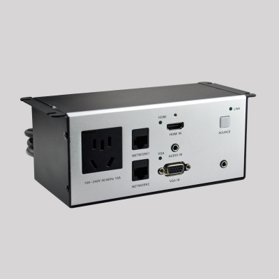 JS-U170HD 可藏式接線盒是一款帶高清轉換及長距離傳輸?shù)倪m合桌面安裝的滑蓋式接線盒,它前端連接的 VGA、音頻、HDMI 信號可通過單根 6 類網線輸出高清視頻信號、音頻信號、傳輸距離 70M,安裝布線便利;