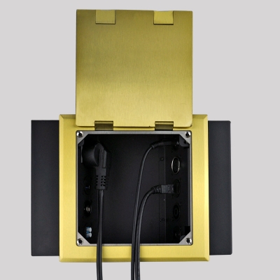 JS(金視)系列可藏式接線盒可以完美的展現(xiàn)線纜及接口的隱藏,且操作比較簡(jiǎn)單,通過按壓(或掀起)接線盒表面面板來(lái)實(shí)現(xiàn)彈開和閉合,閉合后所有接口都隱藏起來(lái),各種線纜可以有序的隱藏在接線盒后面,接線盒面板表面與桌面保持水平。