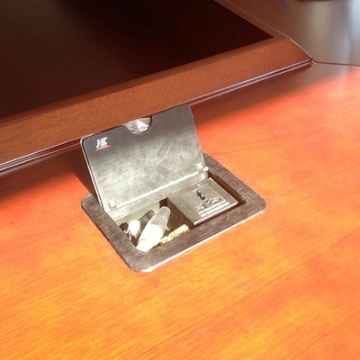 JS-4系列可藏式接線盒提供了一個(gè)整潔、緊湊、簡(jiǎn)單的鏈接解決方案。4系列接線盒使用時(shí)只需掀起內(nèi)面板,隱藏在內(nèi)的線纜展露出來(lái),抽拉出線纜連接號(hào)誰(shuí)被后即可使用,使用完畢后把線纜放回盒內(nèi),閉合面板,各種接口隱藏起來(lái),隱藏后的接線盒與平臺(tái)保持水平。